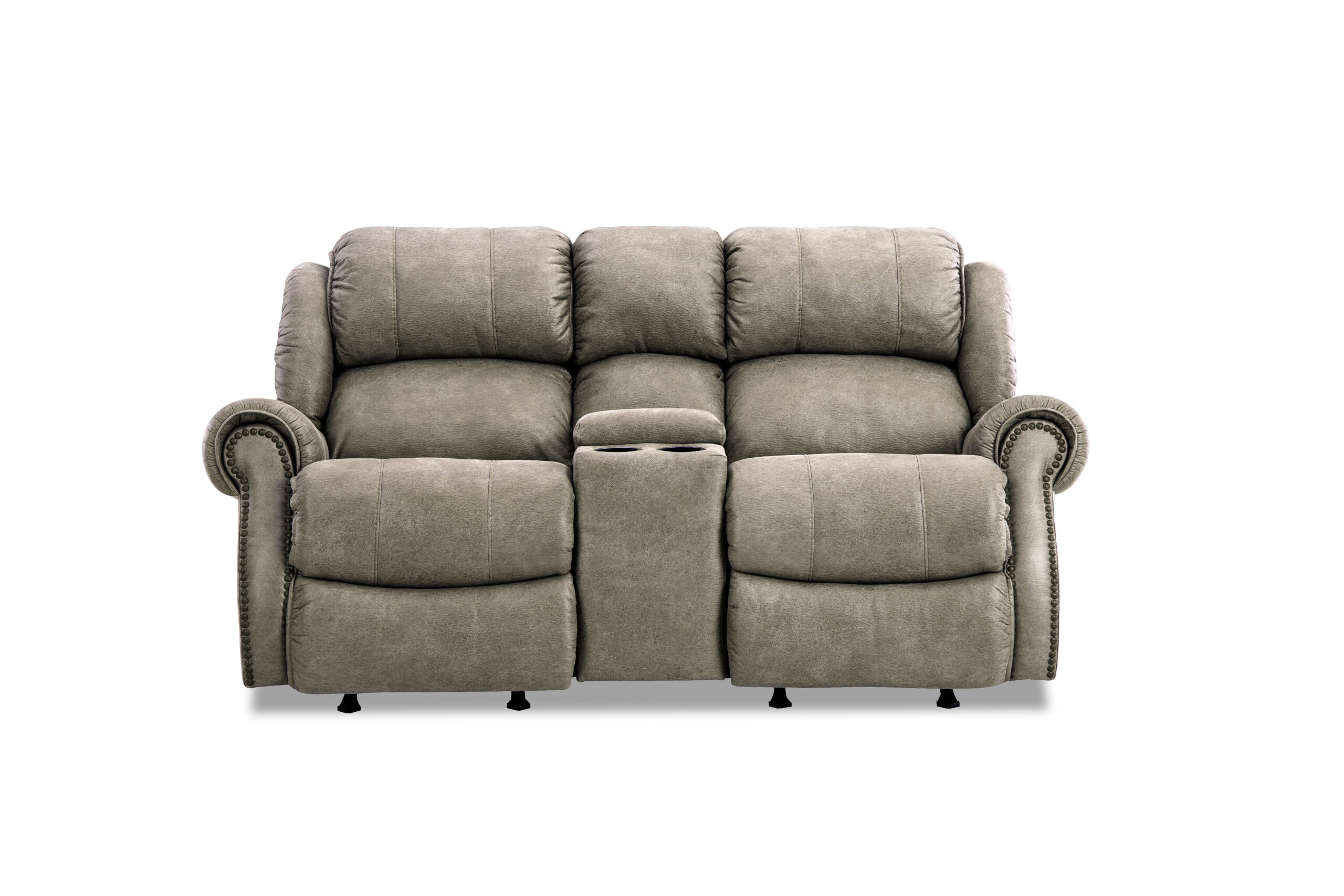 The rocking / reclining mechanism of the 120 Durango loveseat allows you to not only recline, but also relax with a gentle rocking motion that provides a unique and serene seating experience. The Durango reclining furniture group combines plush, pad-over chaise seating with solid foam arm pads for lasting comfort and support. Zippered, loose headrests offer adjustable relaxation, while the 100% polyester faux leather upholstery delivers the look of real leather with easy care. Finished with classic nailhead trim for a refined touch.