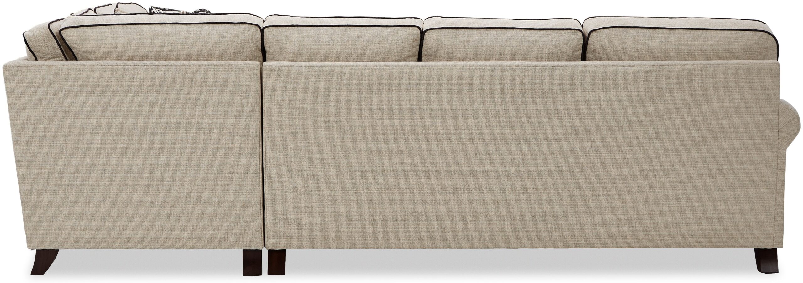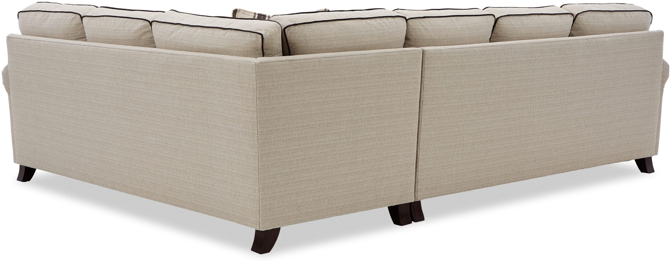 Tradition and Today blend together seamlessly in this classic sectional. It features loose box border backs and plush Super Soft Blend Down seat cushions and backs for extraordinary comfort, as well as Luxdown toss pillows for a welcoming touch. Sock arms and tapered legs compete the familiar, pulled- together look of this beautifully tailored piece. Also available -matching 3 seat sofa, 2 seat sofa, loveseat, chair and ottoman.