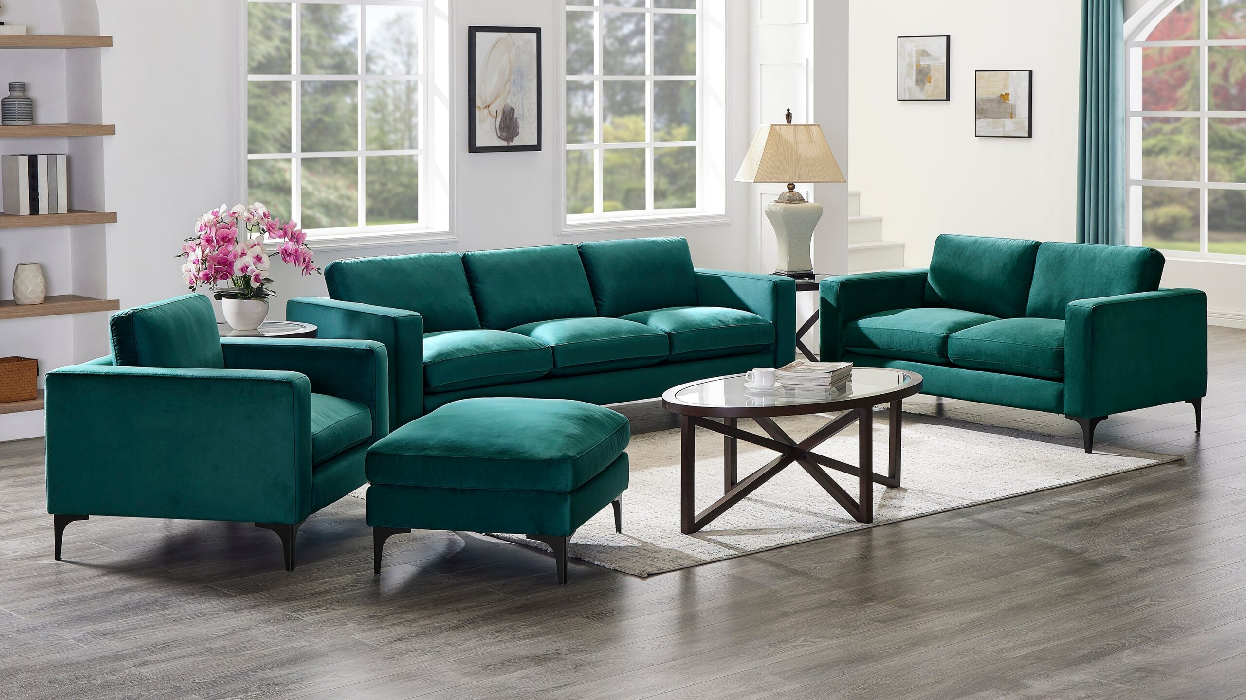 Showstopping, contemporary design can be yours with the Seneca Collection. Featuring luxurious Teal upholstery and chic metal legs, the Seneca is sophisticated, stylish, sensational. Constructed with a solid wood frame and high resiliency foam cushions, the Seneca will be a triumph in your modern home.