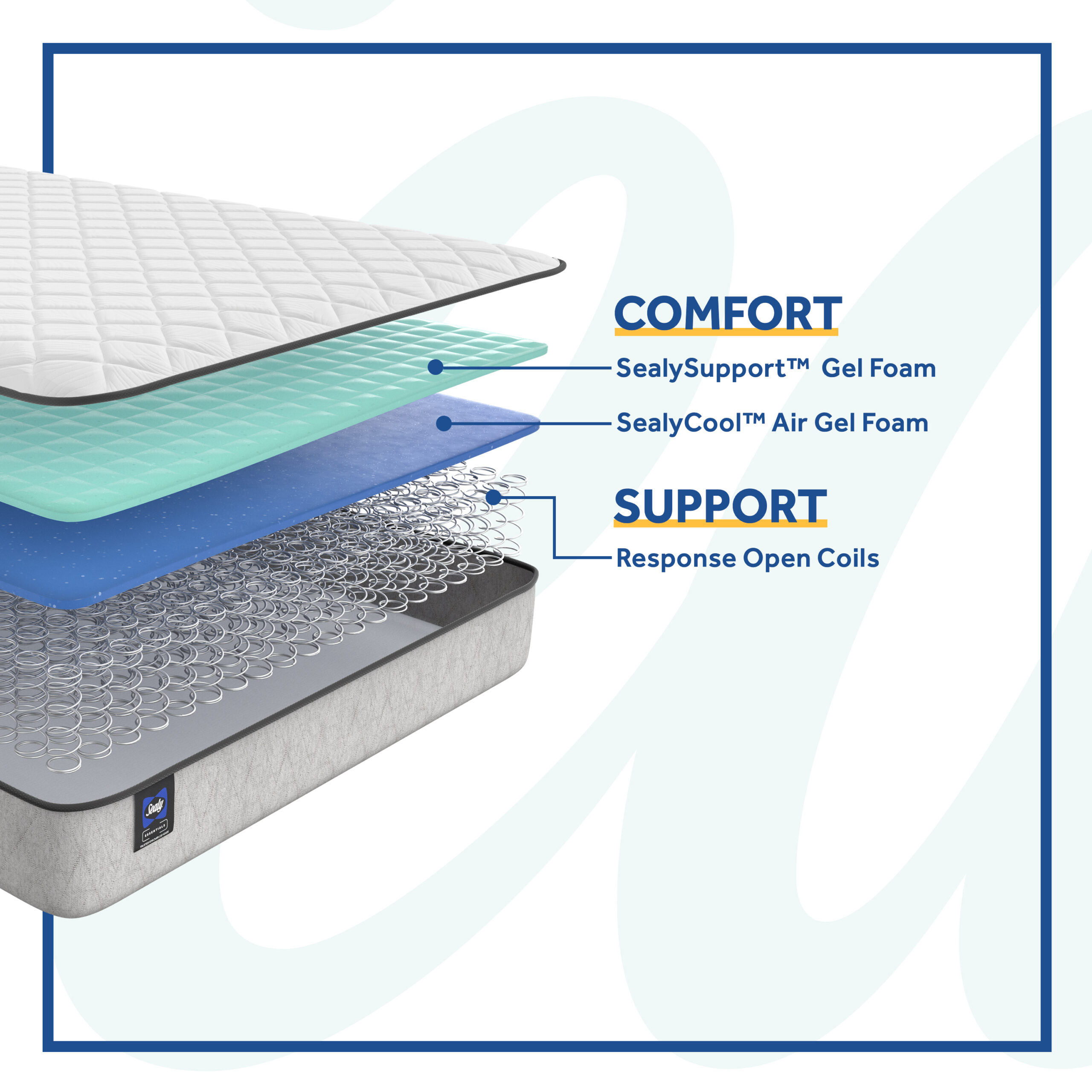 Perfect for guest beds, spare beds, and kids’ rooms, this spring mattress with a firm feel features Response Open Coils and a SealySupport™ Gel Foam layer for an on-the-bed feeling. It’s a great night’s sleep at an affordable price.